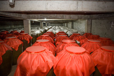 一,酱香型白酒的酿制工艺,迥然不同于浓香和清香。一瓶酱香酒从原料进厂到产品出厂至少经过五年,在这当中,分两次投料、九次蒸煮,八次摊晾,并要加曲,高温堆积,入池发酵,取酒、存贮、勾兑等,在漫长的生物反应过程中,在窖池和空气中的微生物群的同时作用下,各种有利的微生物尽数罗置于酒体中。